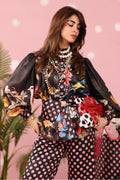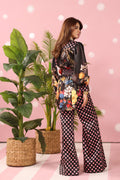 "With this high-contrast ensemble, Polka Panache, I wanted the vintage dot pattern to serve as a sophisticated visual anchor, while the floral placements reveal a curated, editorial depth. The gathered yoke and tailored belt are my way of adding a sharp, modern bite to a playful, chic-inspired narrative." — Musferah Saad.