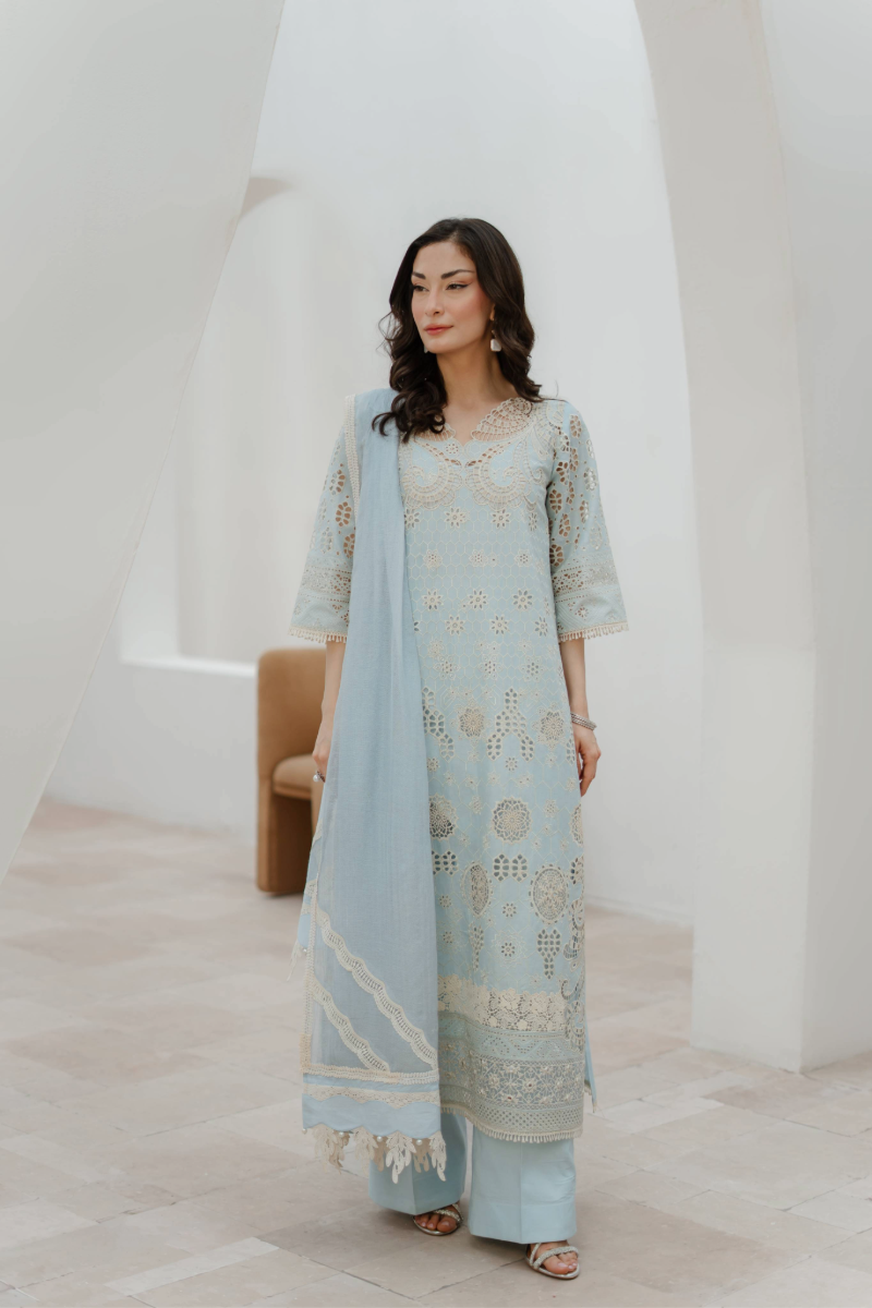 AZURE features a printed lawn shirt beautifully enhanced with delicate Chikankari embroidery on the front,...